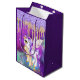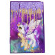 Ett vackert exempel på en vit enmajspony med långt flytande lilak och lila hår och horn i samma färger står på magiskt damm i rymden. Hon är omgiven av faux mousserande glitter i lila och guld och har en galax bakom sig i skuggor av lila, akvarier och tårblått. De är idealiska för små flickpresenter och presenter eller för fantasi/förtrollade rymden födelsedagsfester för din dotter, barndotter, guddotter eller systerdotter.