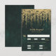 En vismisk illustration av lush hängande viner med guld i lager (digital effekt, inte riktig folie!) över en gnistrande framväxande vattenfärgad bakgrund i grönten, som är full med ljus och magiskt damm, dekorerar denna vintersommarbröllop i vår med ett förtrollat skogstema. Ett elegant, ett modernt svarskort för ett sagolkort för bröllop. Perfekt för brider som kärlek den sagda skogsmiljön, den älvskog eller den älvträdgårdsTemat och framkallar grönt, mauve och guld.