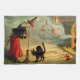 En fantastisk vintageHalloween kökshandduk som presenterar en häxa "på arbete".