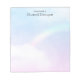 Ett anteckningsblock med en mjuk och underbar bakgrundsbild. Pastellkritor och rosa moln med magisk regnbåge.