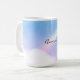 Ett mugg med en mjuk och underbar bakgrundsbild. Pastellkritor och rosa moln med magisk regnbåge.