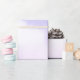 Svällning papper med en mjuk och underbar bakgrundsbild. Pastellkritor och rosa moln med magisk regnbåge.