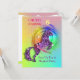 En roligt magisk födelsedagsfest inbjudan med lila gnistra gör att Unicorn hoppar genom en färgstark regnbåge, så söt och en favorit med unga flickor. Anpassa den med din födelsedagskalas personliga födelsedagsfest.