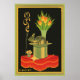 Vintage affisch art som kallas Magic och har en kanin ur hatt, tulpaner, rökning askfat, fyra kort.