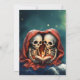 Magiska vinterstunder, två skelett som läser med ljus på vintern. Två skelett klumpar som härskar under en röd filt medan man läser bok tillsammans. Ett litet ljus ger varmt, diffust ljus, skapar scenen mysigt och något mystiskt. I bakgrunden lyser stjärnorna och snöflingor i mörken himmel, medan snö ljuger på golv och tak. Vinterlandskapet med gräs träd skapar en lugn och förtjusande fullt av värme och magi.