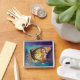 MAGISKT BUTTERFALL I BLUE SPARKLES FYRKANTIG SILVERFÄRGAD NYCKELRING
