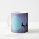 Den magiska Hjort-julafton Teckning-skript Kaffe Mugg. Julnatten med Måne på himlar och två flygande magiska däck framför den. Anpassningsbar text Magisk jul i trendigets skript.