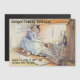 Katt som bär klänning och förkläde som håller en tång i handen och grillar mat över elden i spisen, från en illustrationsserie för barnramsor av Beatrix Potter. Personlig magnet för kylskåp som påminnelse om datum för familjesammankomst, picknick, grillfest, högtidsfirande eller någon annan tillställning. Fungerar som komplement till "Cooking Cat Family Reunion Map Insert Invitation" i vår butik med samma design.