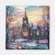 En charmerande magnet med en vinter-kyrka i nedfläckad glass stil.