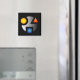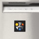 Magnet med SMI stil-intryckning av schematisk logotyp på svart bakgrund