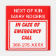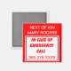 Medical Akut Notification Magnet. Den här magneten har en röd och vit bakgrund och ord "In Fodral of Akut Call" och "Next of Kin". Det finns ett utrymme för nästa av anhövans namn och mobila nummer. Det här är en underbar presentidé till ställe på ditt älskade kylskåp.