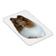 En vacker huvudstudie av en sable och vit grov kollie på en flexibel magnet.