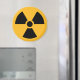 Rund magnet med den officiell internationell-joniserande strålningssymbolen.