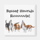 Den ursprungliga bran av en högfärgad, trefärgad Basset som konstruktören Carolyn McFann har på kvalitetskort, papper, kläder och andra underbara gåvor till hundälskare.