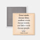 2 tum x 2 tum - Storlek standard. Skrivs ut på 100 % återvunnen Papper. Täckt med reps- och UV-resistent Mylar. Ingen minimiorder. Både runda och kvadratiska magneter finns tillgängliga.