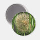 Maskros är redo att släppa sina frön. Gyllene puffboll bland gröna grässtrån.