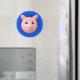 fin magnet av husmunstycke designad i tecknad stil på blå bakgrund