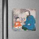 Detta kärleksfulla vintage bild har ett asiatiskt mor och hennes söta lilla baby sitta på marken som delar blommor från söt orange. De är klädda i traditionella kläder som är blå och orange. Bakgrunden är blåsor och tanker. Se min butikskonst efter MAR för matchning av produkter med den här designen.