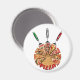 Magnet Pizza-segment på skärbordet och kursiv flagga