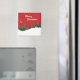 Ge någon julstämningen med Skogen Scene Square Magnet - fir träd med snö under och crescent måne över. Ord "God jul" är fullt anpassade.