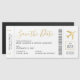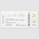 Gäster kärlek-boardingkortet sparar datumet, och vårt flygplan i guld har ett hjärtcentrum för romantisk beröring. Jetset, wanderlusty par som träffades under resan och som har ett destinationsbröllop - det är en bröllop-stationär match, nej? När man gifta sig utomlands och faktiskt vill att gästerna ska börja planera omedelbart - ett flygplan biljett, spara datumet i ordning. Må lika gärna göra det magnetiskt så att de kan visning det på kylskåpet under de kommande fem åren. Du vet att det kommer att hända.. så fortsätt, anpassa din roligt och det unika tematstället hur du än vill! *MINI VERSION FINNS TILLGÄNGLIG I VÅR SAMLING I SPARA DATUM MAGNETER GENOM PAPPRA GRAPDESTINATIONER.*
