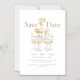 Magnetiskt vitt och guld champagne torn bröllop spara datumet