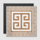 Magnetiskt kort med grekiska nyckel (Meander) mönster-elegantens vita utformning med nyckel gräns för att matcha med brunt forntida Greklands stil-bakgrund. Denna utformning av berömden och det populära grekiska mönster i den fortsatta linjen kan ändras för att ändra färg om man så vill.