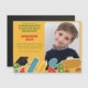 Cute Kindergarten, studenten, förkunningsmagnet. Bakgrund till gulten i buss med grafiska skolmatningsikoner. Stora centrala foto (platshållare som ska ersättas). Modern visuell typografi i många färg drar sig ur grafiken. Sofistikerad men ungdomlig.. Cute studenten-utlysning och underbar nyckelfråga i ett spektakulärt steg på sin skolresa.