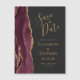 Det moderna spara datum magneter-kortet i elegant har en burgundisk vattenfärgsagat gräns som trimmas med faux guld glitter. Anpassa enkelt guld färgad-texten på mörkens kol-grått-bakgrund.