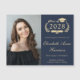Det moderna högskolefartyget Blue studenten, ett magnetkort för mörk med klassår, en illustration av lagerkrans, en höjdpunkt för grad, ett diplom, ett foto av student och deras namn i ett skript för elegant light guld. Lägg till deras skola, stora, ära eller framtida planer.