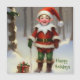 Julkortet i helgdag har en söt och lycklig i en magisk skog.