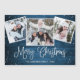 Magnetkort för julblått trä 3 PHOTO Hälsning.