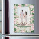 Tropiska vattenfärgsfärger löv och rosa blommor accentuerar ditt favoritfoto med namn och hälsning i chic med text på dessa magnetiska julkort. MER stilar och design i vår samling.