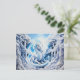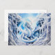 Det här magnifika Vita draken Fantasy-vykortet, med snö, kristaller och ljusblått ögon, som är inskrivet i en fantastisk vit oljemålning, är perfekt för drakentusiaster och fantasi. Den här teckningen är idealisk för att skicka magiskt hälsning, dekorera blanksteg eller lägga till i samlingar av mytisk konst.