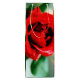 Magnifikt röd ros med morgondaggfall. Fin röd ros blommar i trädgården. Röd ros rosarium.