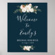 magnolia blommande blå bröllopsdusch välkomstskylt poster