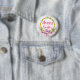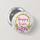 En Glad påsk-knappbricka med elegant design - en faux marble struktur i vitt utgör bakgrunden. Överst är en ram med faux guld-folie gräns. Storfärgade rosa- och lila vattenfärgstygnblommor med grönt bläckstråleaccenter dekorerar designen.