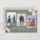 Sydstatsinspirerade "save the date"-kort med tre fotomallar. Vita sydstats-magnoliablommor pryder hörnen på horisontella, grågröna kort. Fotomallar är trappstegsplacerade med den vänstra lite högre än mitten och det högra fotot lite lägre. Bilder med antingen stående eller liggande orientering fungerar om motivet är centrerat. "Spara datumet" högst upp, med fullständiga namn, datum och vigselplats längst ner. Färgerna matchar pappersvarukollektionen Southern Magnolia. Visas på de mindre korten.
