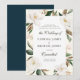 Denna design har en blomster ram med magnolia blommor och text i mitten. Den marinblå baksidan kompletterar väl akvarellblommorna och det gröna bladverket. Texten och färgen kan ändras.