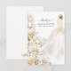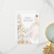 Vattenfärgbrid i bröllop klänning med guld och vit magnolias. All text kan ändras.