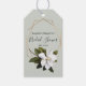 Magnolia bröllopsdusch med guld och salvia presentetikett