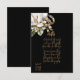 Vackra vita Magnoliablommor och gyllene bröllopsringar på en svart bakgrund och guldfärgad text.