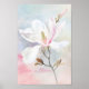 Den här delikata färgmålningen fångar på ett vackert sätt den fina elegansen hos en enda vit magnolia i fullt-blomman. De mjuka pastellhuvar som dansar runt petalerna smälter lätt in i den subtila bakgrunden och ger en känsla av lugn och ära. Sammansättningen är både hårfin och intrikad, teckning öga till blommans bra medan den omges av en mjuk, nästan drömmande atmosfär. Biet är en perfekt för dem som uppskattar naturens tysta skönhet och beteskonsten.