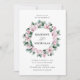 Bröllopbjudanden till blommigten i elegant som innehåller namn omgivna av en vattenfärgad magnolias och eucalyptus löv i andningsorganen, med uppgifter om bröllop som visas nedan. Baksidan av inbjudningarna till eukalyptus-bröllopet har en solid bakgrund av grönten. Designad för samordning med vår insamling av Magnolia & Eucalyptus bröllop.
