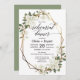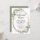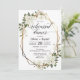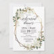Det här är en vacker inbjudan till bröllop-repetitionsmiddagen med magnoliafolan och guld geometriska ram.