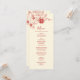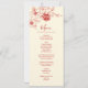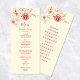 Röd magnolia linjekonst gren och en röd dubbel lycksymbol på en krämfärgad bakgrund. Med anpassade namn på brud och brudgum, bröllopsdatum och en anpassad menytext. På baksidan finns initialerna att ändra.