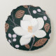 Magnolia Whisper Deep Grönt Brown Round Pillow Rund Kudde