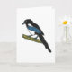 Teckning i en Magpie med den utpräglade blå blixten av färg och de vita markeringarna - på gren. En smart fågel med mycket folklore som hänvisar till den. En roligt för Magpie fläkt.