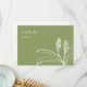 Äktan av konstverk har en minimalistisk representation av det vackra ingefingerverket som så ofta ses på Hawai'i. "Mahalo" är hawaiiskt för "tack". Ett minimalistiskt tackkort som är ett underbart konstverk för att tacka dina gäster presenter vid din födelsedagsfirande. Lägg till din egen formulering om du vill eller bara lägger till ditt namn....Om du vill lämna det tomt för en handskriven anteckning måste du ta bort ordalydelsen i mallen. Mjuk varm grönt för att få ett lugnande intryck. — PRODUKTUPPGIFTER: Mått: 5 tum L x 7 tum H (porträtt), 7 tum L x 5 tum H (liggande). Högkvalitativ, fullt-färg-utfallande utskrift på båda sidor. Papper typ: avsluta projektionsyta. 17,5 pt tjocklek/120 lb vikt/324 GSM. Ljusvit, obestruken madrass avslutar med ett eggshell-struktur. Papper är lätt att skriva på och kommer inte att smeta. Tillverkad och tryckt i USA. Anpassade: Lägg till din information så att den blir unik för dig - ORDERING MADE EASY: 1. Välj önskat antal kort genom att Använda den nedrullningsbara menyn. 2 Ange informationen i mallen 3 genom att Använda den blå rutan. Dubblan kontrollerar stavning 4. Lägg till objektet i basket och checka ut - VIKTIG INFORMATION: (KOSTNADSFÖRING med Zazzle Plus-medlemskap - mer information finns på huvudsidan)