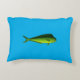 Denna nautiska - marina livets kudde är dekorerad med mahi mahi-fiskikoner. Mahi mahi är också känd som delfin eller dorado och är vanlig längs varmhavsströmmar. Mahi är populär mat och sportfisk.
